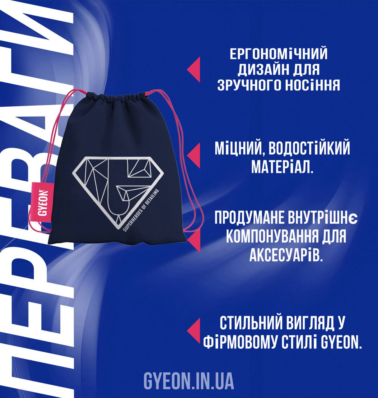GYEON EVO Backpack — це стильний і надзвичайно функціональний рюкзак для професіоналів та ентузіастів деталейного догляду, створений, щоб усе необхідне завжди було під рукою. Завдяки продуманій ергономіці, міцним матеріалам та водонепроникному дизайну, він ідеально підходить як для щоденних поїздок, так і для роботи в умовах студії чи виїзного сервісу. Спеціальні відсіки для пляшок, аксесуарів та рушників дозволяють зручно організувати простір, а преміальний вигляд підкреслює приналежність до світу GYEON.